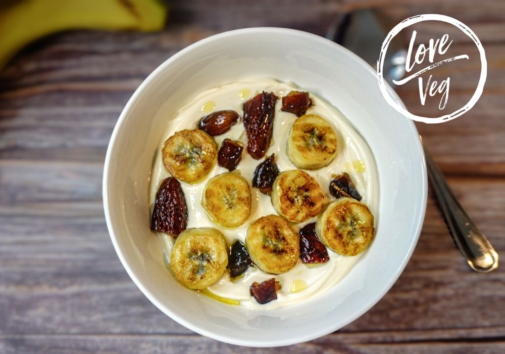 La clave fue su versión vegana: yogurt vegetal, vainilla, endulzante y un poquito de maicena que, al hornearse, se convierte en una crema tibia y suave que parece postre… pero es desayuno.