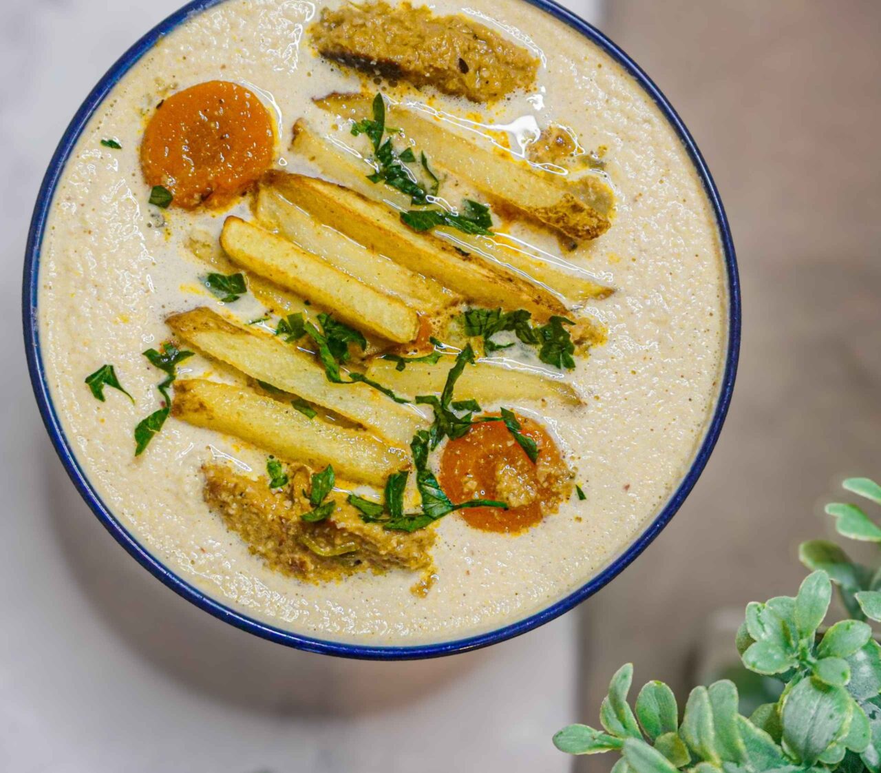 Sopa de maní con pollo vegetal