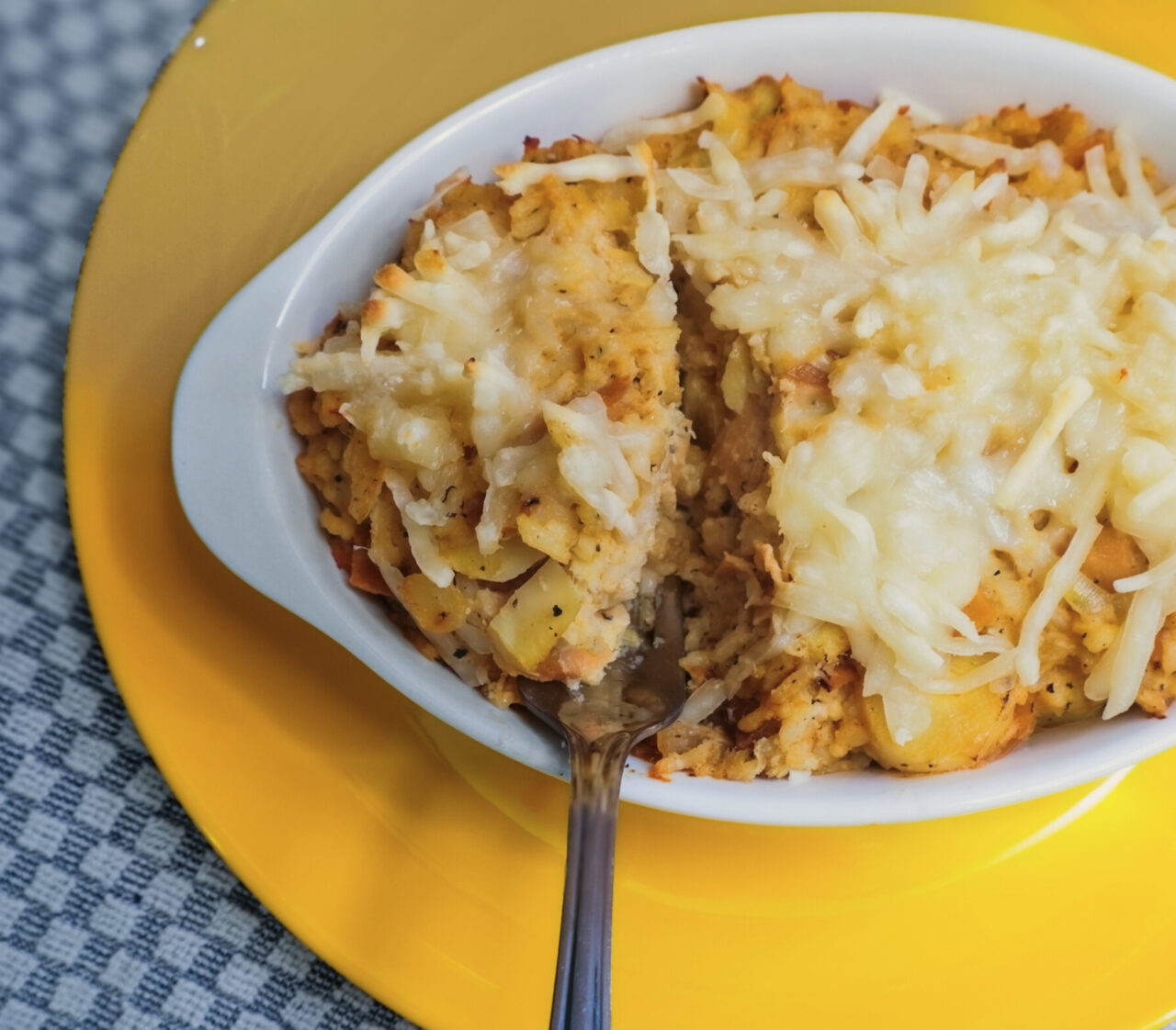 Pastel de yuca con carne de lentejas, nuez y champiñones