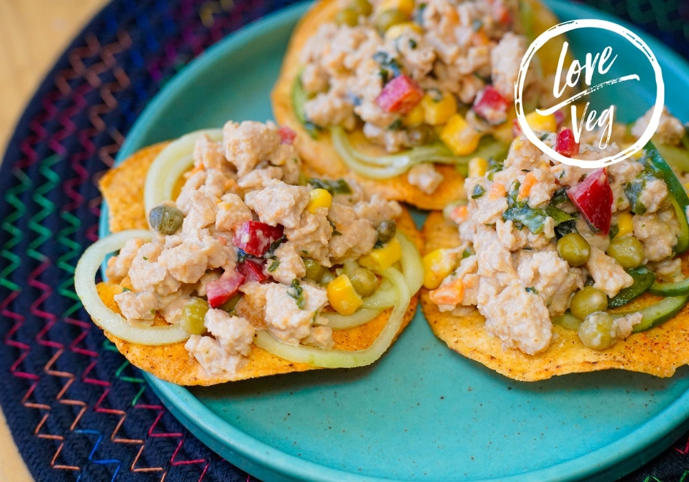 Refrescante y cítrico, con soya texturizada marinada en limón, cebolla morada, chile y cilantro, emulando el ceviche tradicional sin sufrimiento animal.